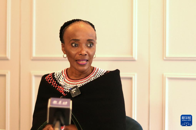10月20日,南非妇女、青年和残疾人部长辛迪西韦·奇孔加在约翰内斯堡接受新华社记者专访。新华社记者 白鸽 供图