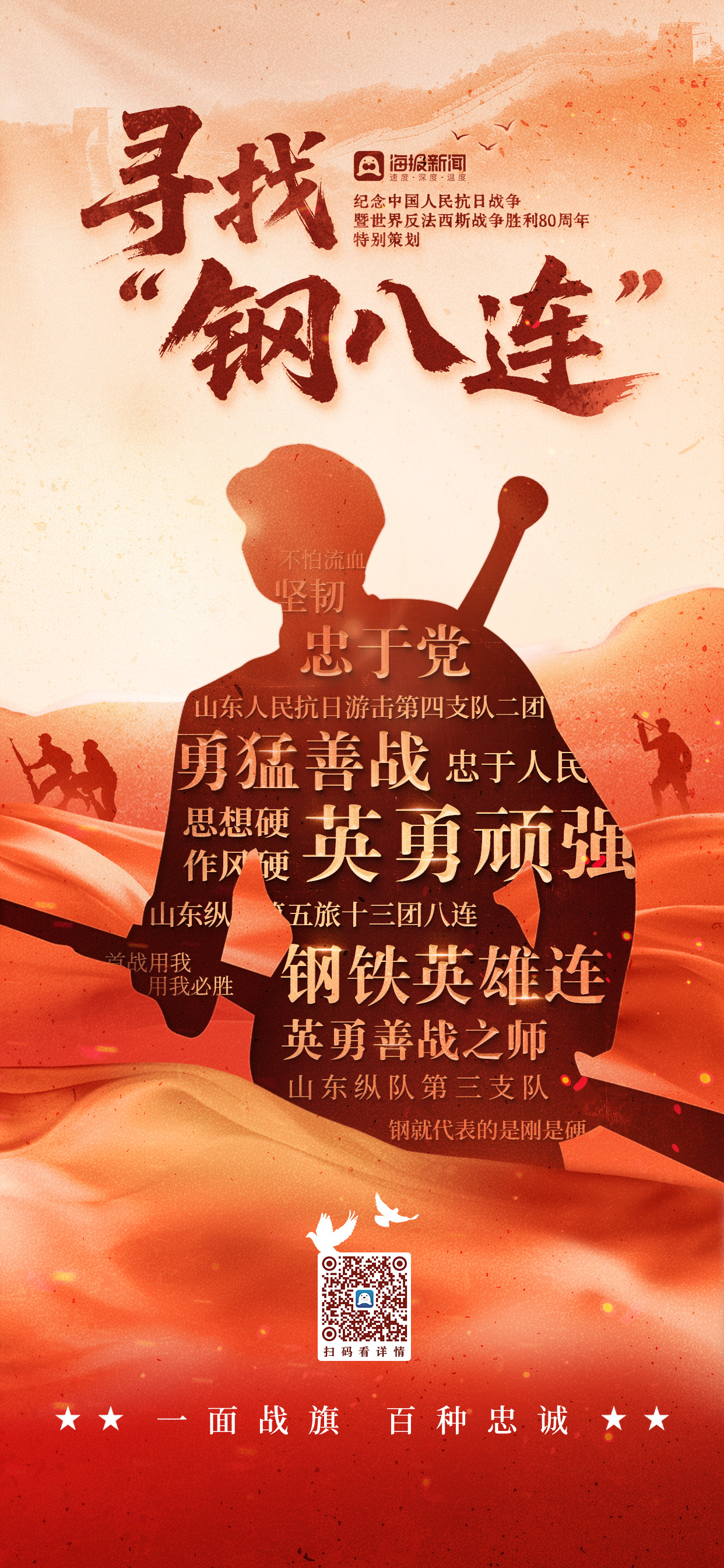 2025年9月3日,纪念中国人民抗日战争暨世界反法西斯战争胜利80周年盛大阅兵在北京举行。阅兵式上,“胶东军区”授予的“钢八连”荣誉旗引人注目。山东省与战功赫赫的钢八连到底是什么关系?山东省交通区为何授予军旗?我们踏上探索之旅。让我们没想到的是,在1993年的阅兵式上,却发现了五面“钢八连”和其中一个“钢八连”的另一面光荣旗帜,与“钢八连”旗同时出现。他们还挖掘出了山东两代父子悼念钢八路军烈士的“传奇”故事,沙县一个村庄如何纪念“钢八连”烈士。恩东省在元旦第一次吃饺子,纪念八路军英雄。扫描二维码查看特价优惠。搜索“8 号钢铁公司”。