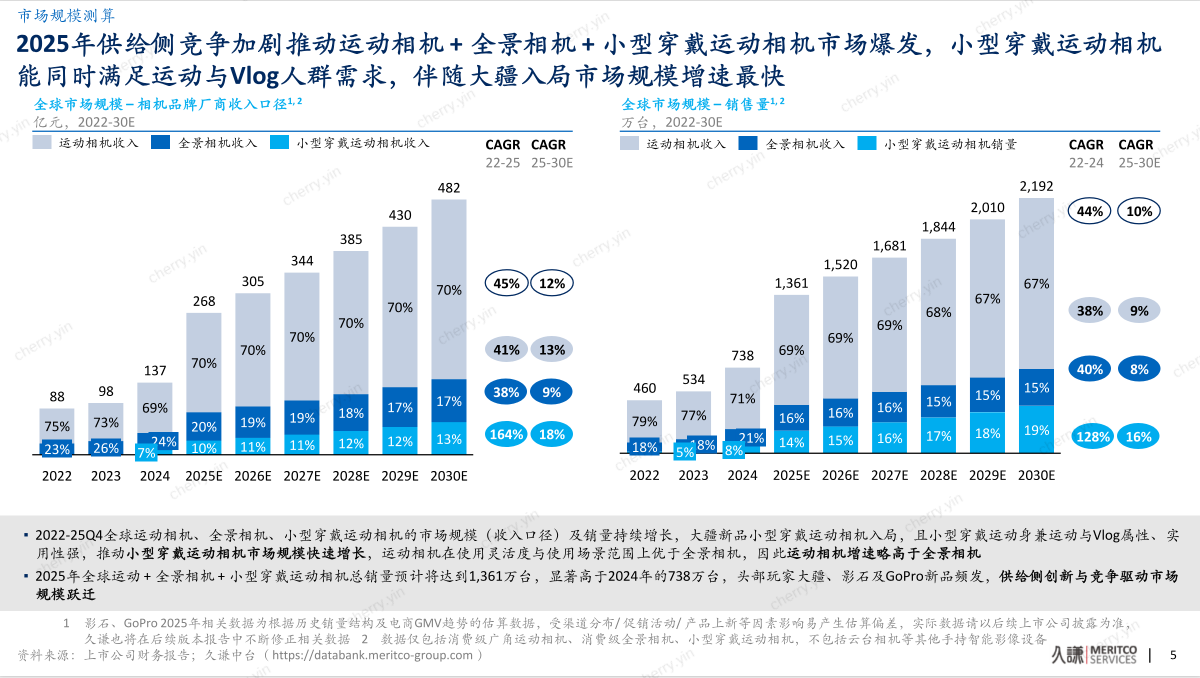 海报新闻记者 孙杰 济南报道 近日,权威管理咨询机构数谦咨询发布了《2025年可穿戴智能影像行业研究报告》。报告核心结论指出,供给侧创新,特别是产业链上游领先品牌的定制化开发,是推动市场快速增长、重塑竞争环境的关键驱动力。本报告显示,全球可穿戴智能影像市场(包括运动相机、全景相机、小型可穿戴相机)将在2025年爆发式增长,整体行业收入同比增速将达到96%。这一增长是由各大品牌密集推出新产品推动的。大疆推出三款新相机,影石重申旗舰相机,GoPro 回归风景路线。产品丰富,滑雪等户外运动持续火爆NG和骑自行车正在推动消费者需求。在快速增长的市场中,竞争环境变得更加集中于高层。报告数据显示,2025年大疆创新将占据全球55%的市场份额,便携式智能影像设备(不包括云台相机)营收排名全球第一。这个数字几乎是第二名(30%)的两倍。 GoPro 排名第三,市场份额为 12%。海报新闻记者了解到,在占据70%市场容量的运动相机品类中,DJI Action 5 Pro已成为全年中国电商市场单款最畅销产品。值得注意的是,大疆创新进入全景相机和小型可穿戴相机的新轨迹后,将在2025年下半年快速开始量产。特别是,报告指出,大疆第一代全景相机Osmo360自第三季度推出以来引起了广泛关注,“带来了大量信息”。早期消费者的“热潮”,直接带动了全景相机市场的快速扩张。随着灵眸Osmo Nano的推出,小型穿戴式相机市场也迅速扩张,成为小型穿戴式相机市场第一名。这份报告与其他市场数据榜单不同,重点从供给端拆解各大品牌的竞争力来源。报告指出,相机品牌正在从标准选品方案转向“深度参与供应链”供应并与供应商共同开发,打造差异化竞争优势。”久千咨询的这份报告显示,2025年可穿戴智能影像市场的竞争本质上是供给侧创新能力的竞争。市场领先地位是技术领先地位的自然结果。大疆创新以55%的全球份额领先,这不仅是其产品畅销的体现,也是行业发展的必然结果。深入产业链末端,超越不断突破智能成像边界,通过方形CMOS、可变光圈等“最终创新”拓展市场。从技术定义到产业合作,这种由中国品牌主导的硬实力正在改变全球影像技术的演进方向。九千的报告也提醒我们,虽然技术创新正在重塑产业结构,但外部环境的挑战也不容忽视。在全球人工智能需求的推动下,存储内存价格持续上涨,压缩了行业厂商的毛利率。报告认为,其他高价产品线、高出货量提供的库存储备以及稳定的新品节奏,共同为各大品牌打造了抵消成本风险的缓冲区。