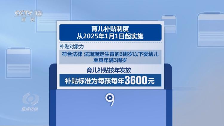 CCTV新闻(方法访谈):最近,已经宣布并实施了与数千所房屋有关的关键政策。换句话说,这是“实施子女育儿补贴的计划”(以下简称“计划”)。即使您的第二个或第三个孩子,根据“计划”,2025年1月1日,也可以获得3,600元的补贴,直到三年。这是一项重要的国家媒体政策。我们提供全国现金补贴,以向养育儿童抚养的家庭提供直接和直接的付款。这有助于减轻养家糊口的家庭压力。哪些家庭可以要求托儿补贴?为什么这样建立了补贴标准?您希望您取得什么成果?